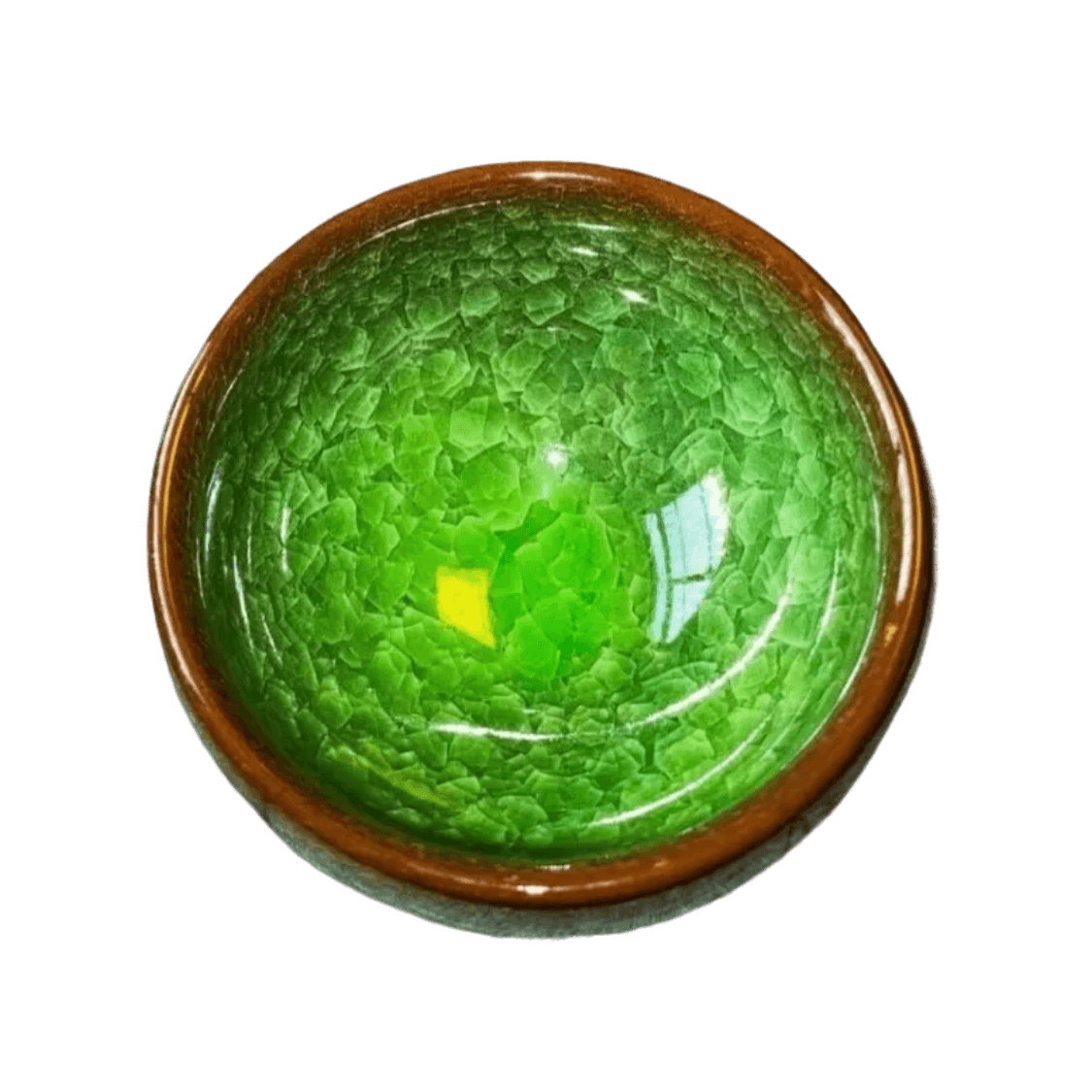 A handcrafted Tenmoku teacup with a stunning green ice-crack glaze — each piece one of a kind. Fired at 1300°C for rich texture and smooth tea flavor. A perfect fusion of nature, fire, and timeless tea tradition.
