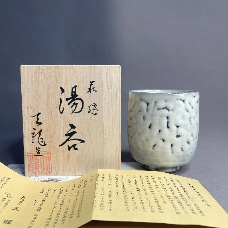 This Hagi Yunomi is handmade by Japanese ceramic artist Tenryu (天龍作).